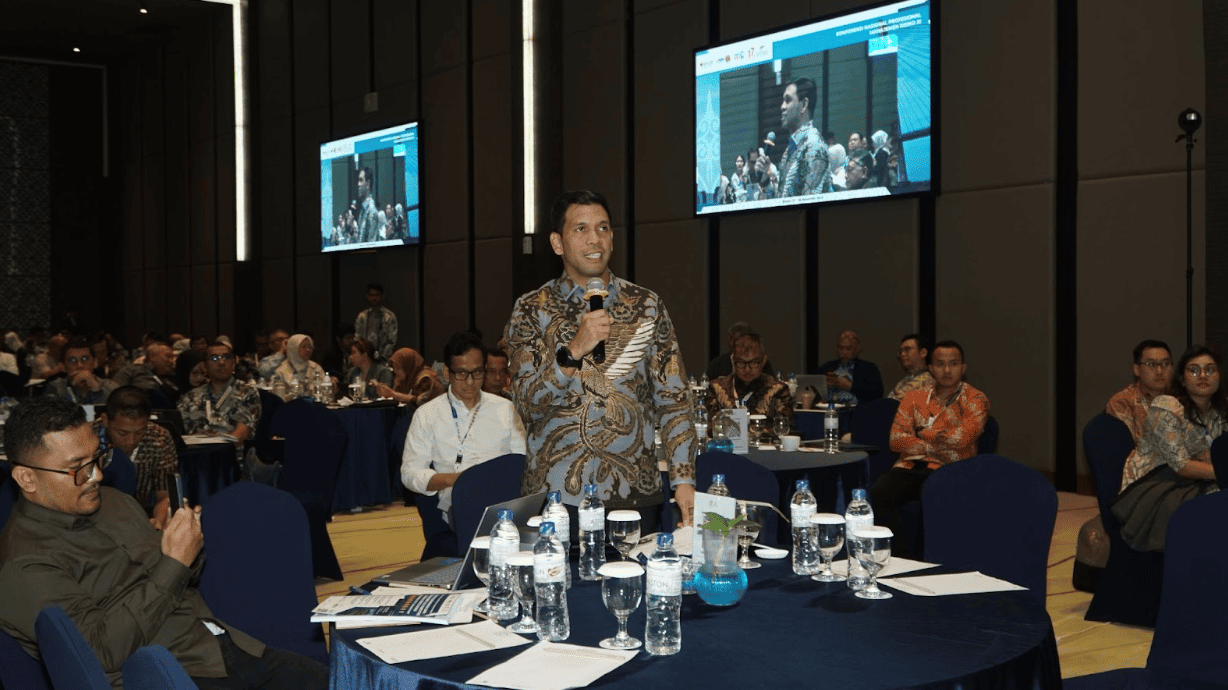 Keterangan Foto:Geraldi Tobing, Direktur Keuangan PT Agrinas Jaladri Nusantara (Persero), saat menyampaikan speech pada acara Konferensi Nasional Profesional Manajemen Risiko XI.